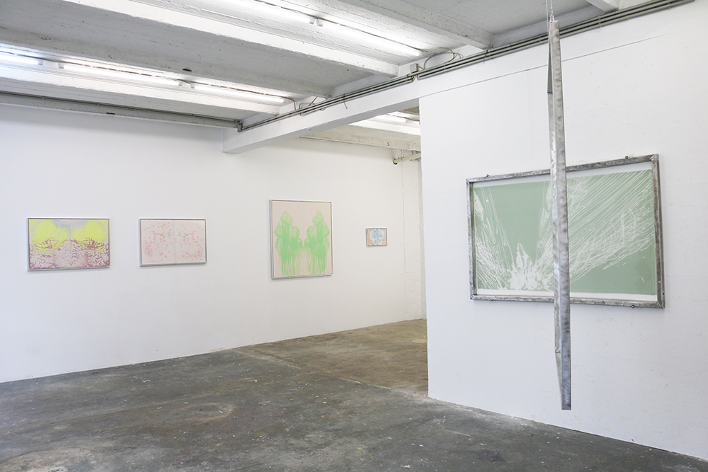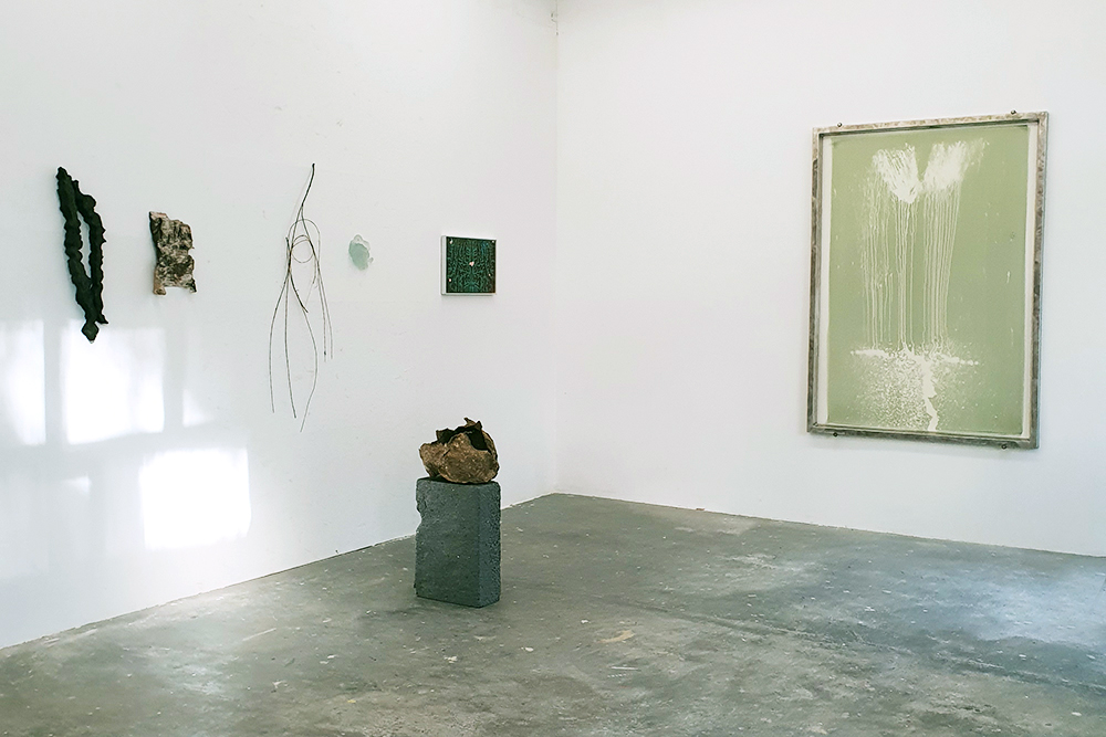 Exhibition view – V 04. From left to right: sculptures by Maria Nordsø Lundberg; Ocean Flowers – Vandyke Brown by Annika Unterburg; NEWBEGINNINGS #02 by Tanja Hehmann photo credit – Tanja Hehmann